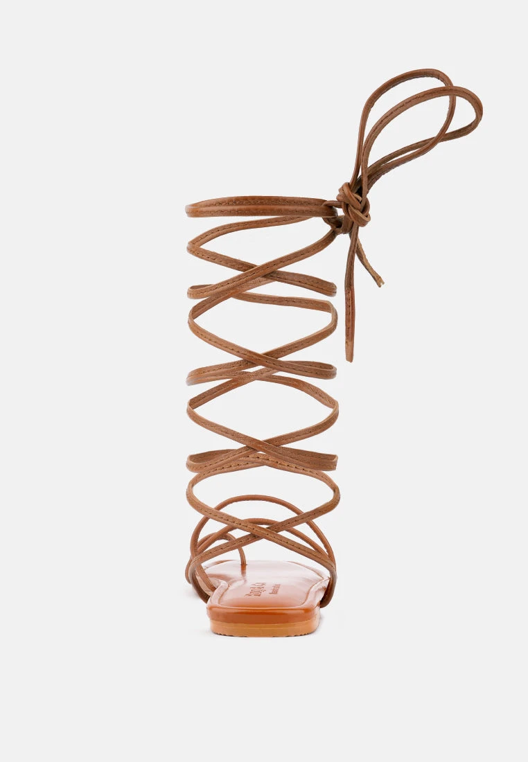 AMATHA Tan Essential Toe Ring Summer Leather Flats