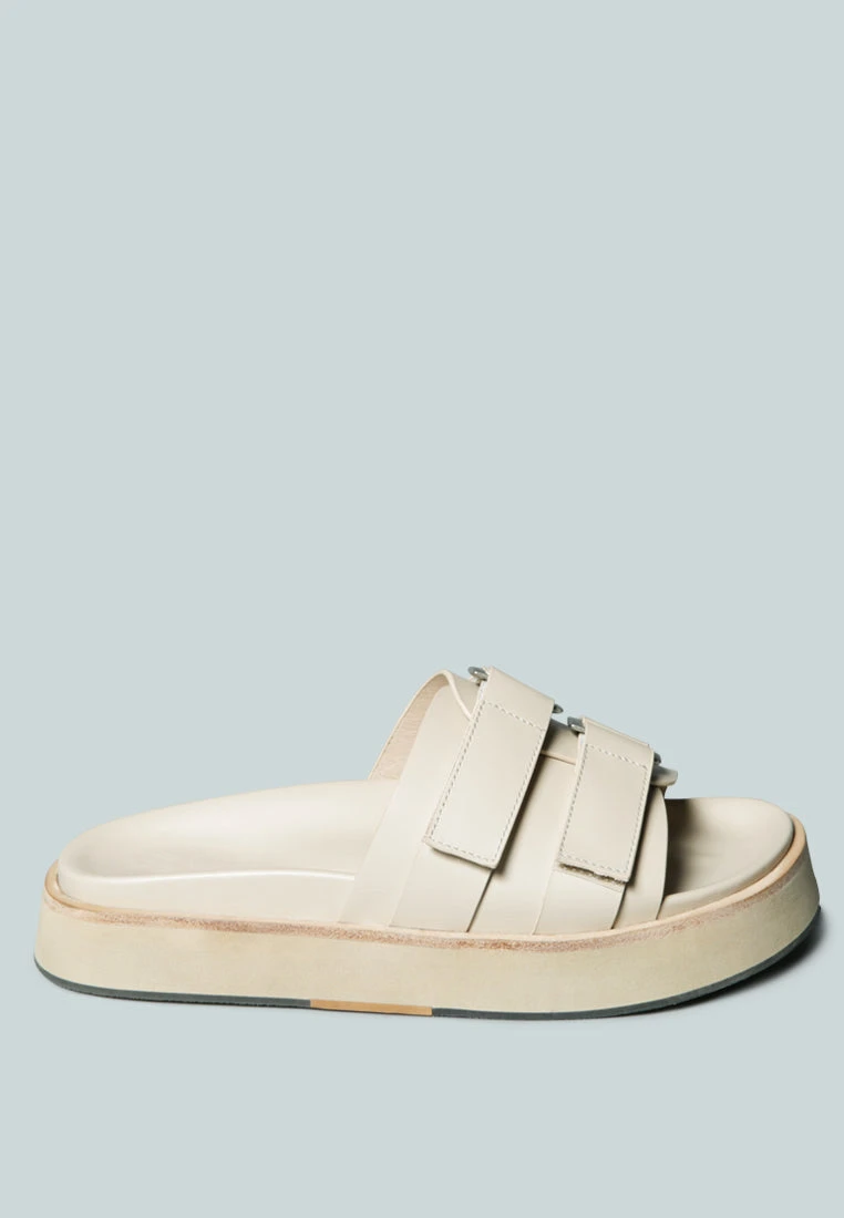 Nude Buckled Slip-On Sandal, with Velcro trims. The soft footbed grips the feet well and relaxes. Stay ahead with ANISTON in your casual wardrobe. The quintessential luxury – get one for the times you want to ‘slip-on’ into rest, for the fashion innovators and leaders.