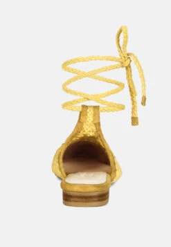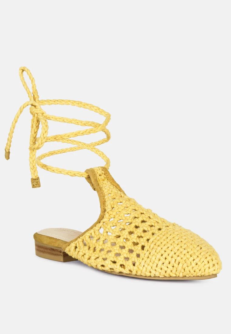 BARTSI Yellow Handwoven Tie Up Flat Mules