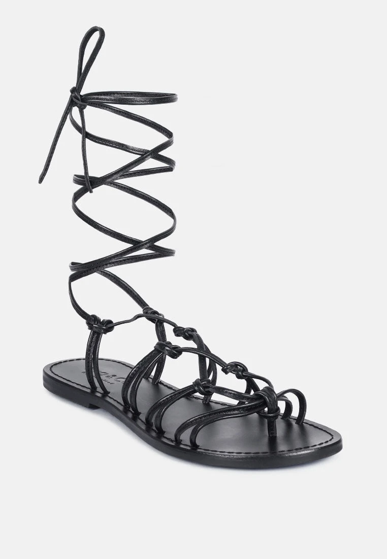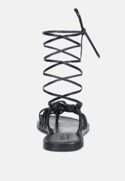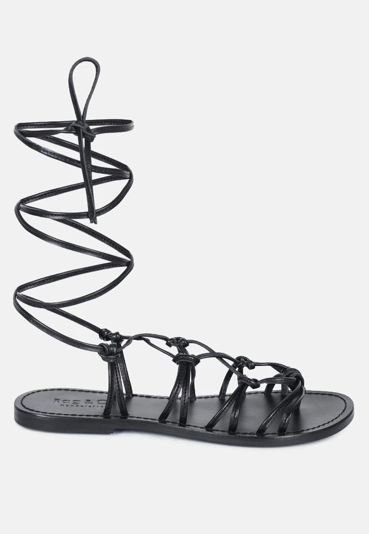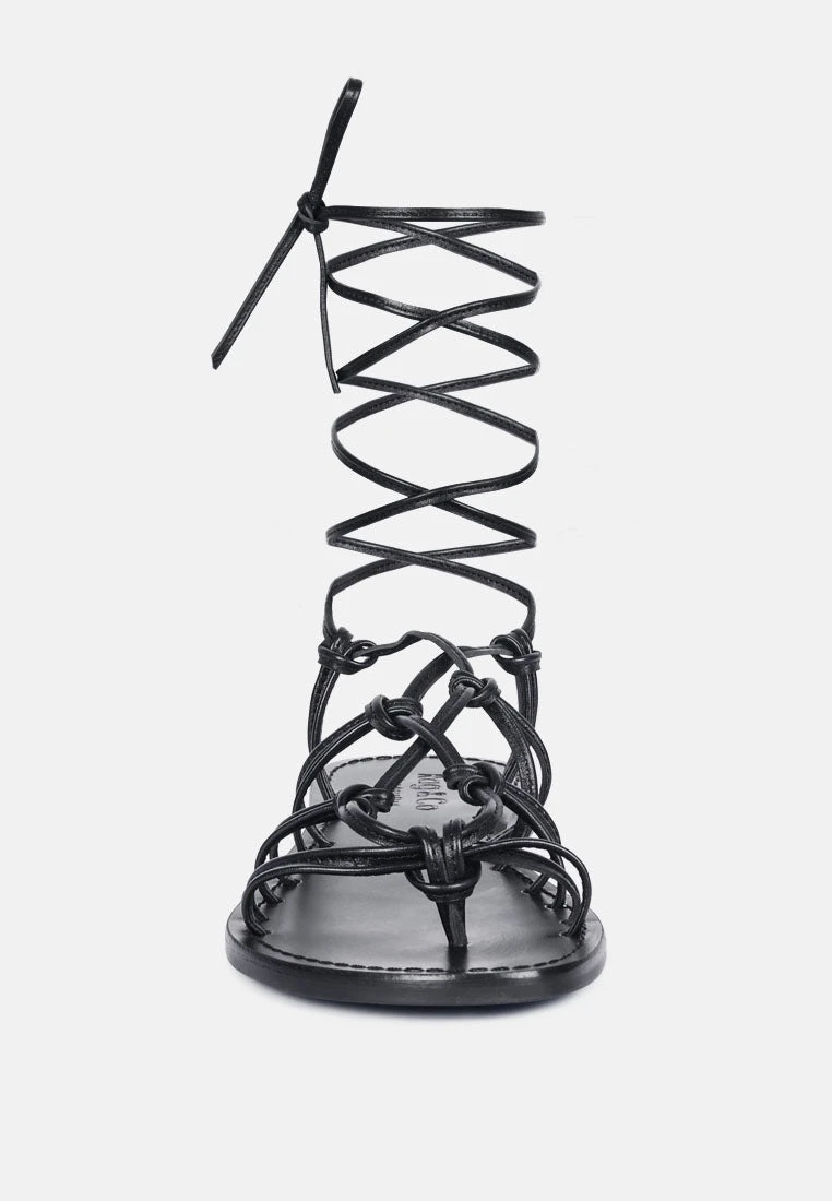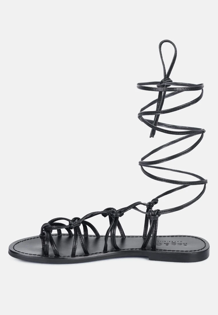 BAXEA Handcrafted Black Tie Up String Flats