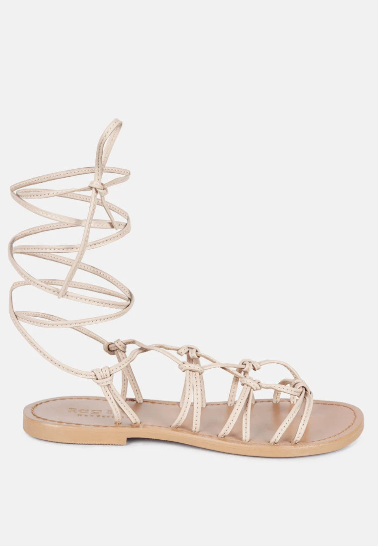 Summer Leather String flats with tie-up design. Grips feet well and is very comfortable. The style is available in three colors to choose from.