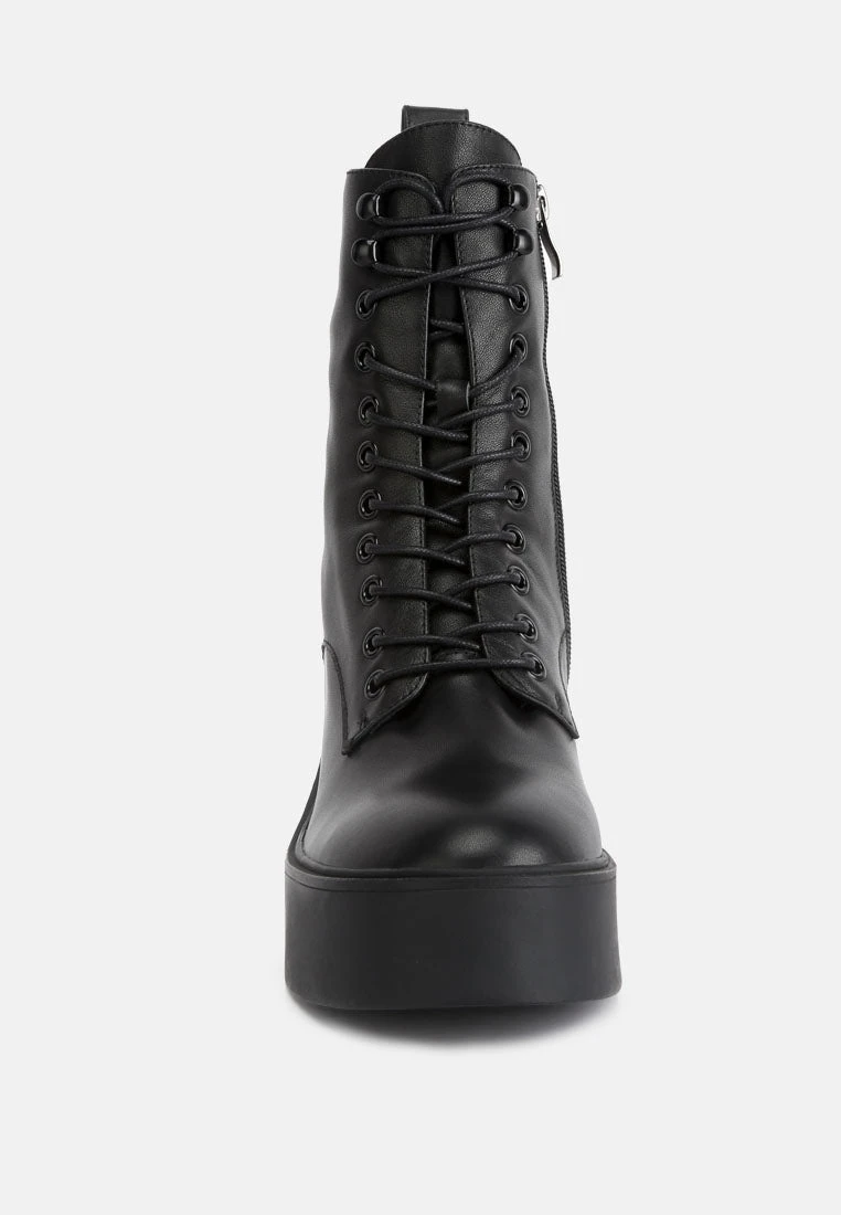 The perfect fusion of style and comfort, the platform boots are chic and bold with the lace up and platform detail. The boots are versatile and would make an ideal addition to your fall shoedrobe. The lightly cushioned insoles also make them a comfortable pair!