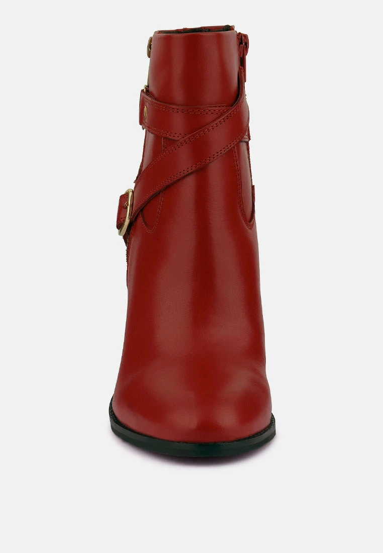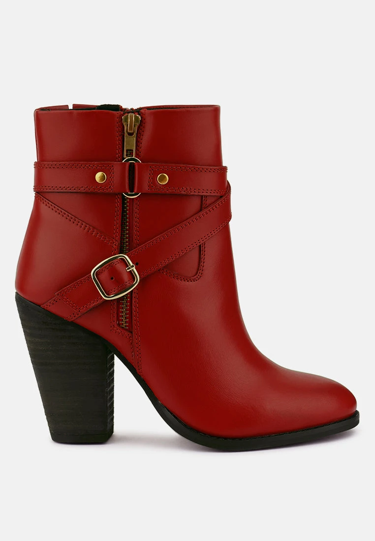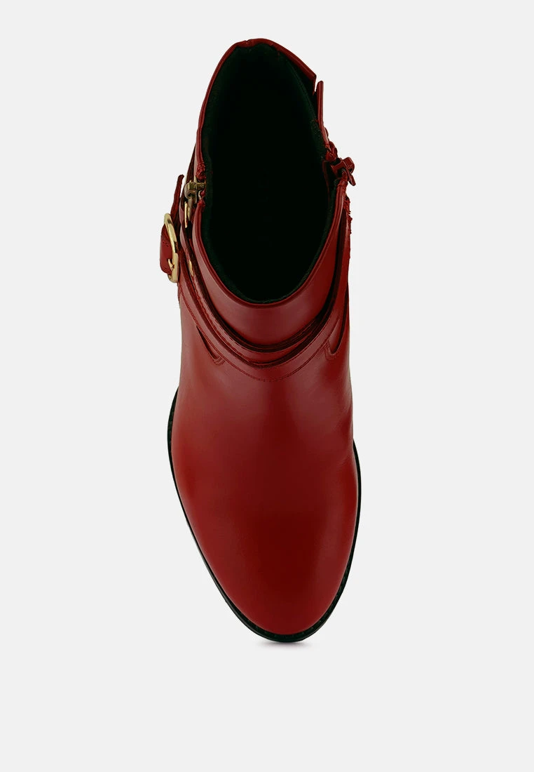 CAT-TRACK Red Leather Ankle Boots