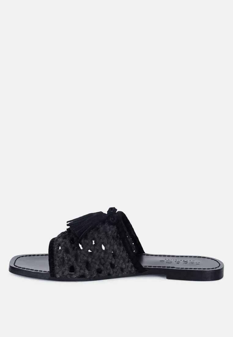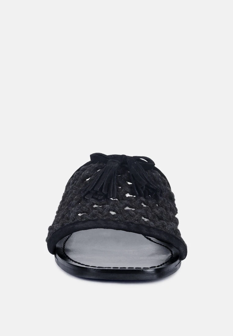 CEDAR Handwoven Natural Black Tassel Flats