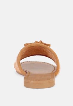 The Classic summer flats with 100% Natural cotton woven structure with soft suede frame detail and the tassels at the top. The square toe open slides are casual, comfort shoes from Rag & Co.
