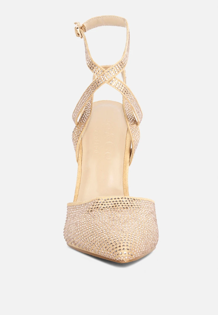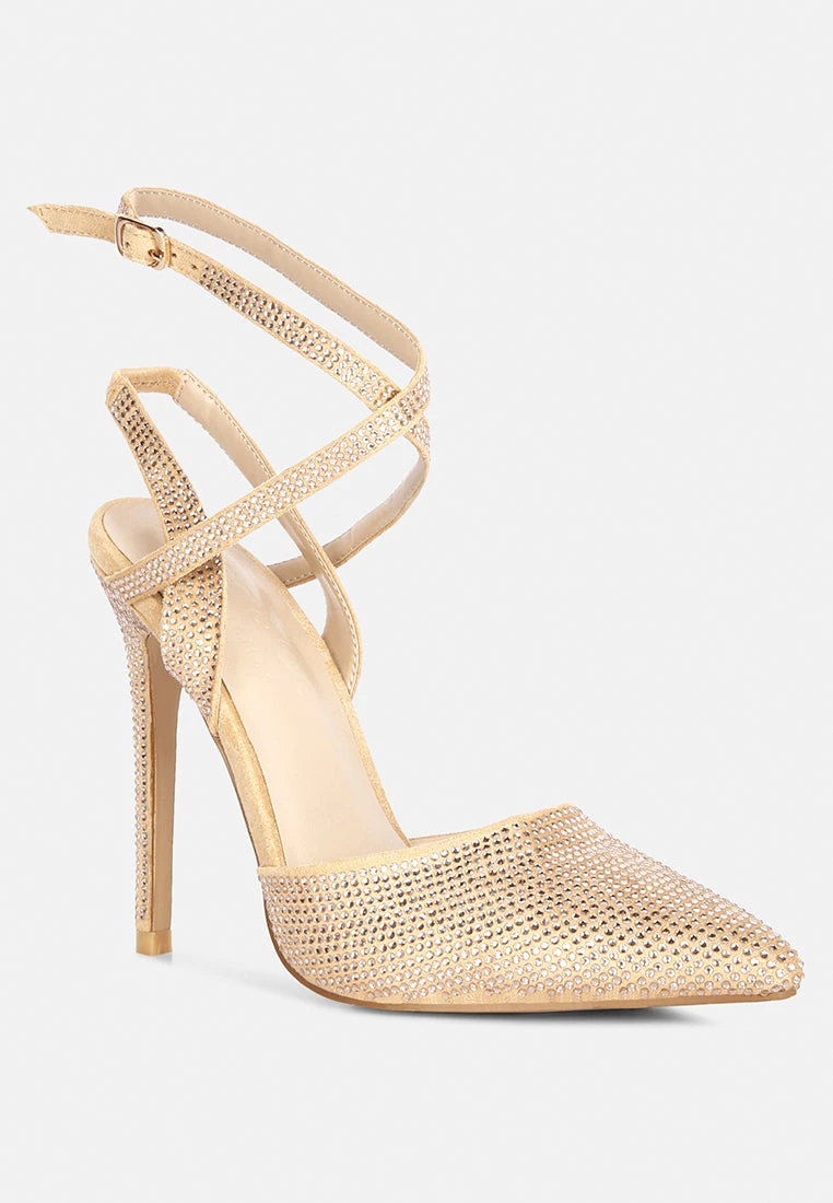 Add some dazzle to your already glamorous personality! The high heeled sandals are minimal but alluring with the beautiful rhinestone embellishments and the ankle straps ensure a proper fit. The sandals have soft insoles that support your feet well and cut strain, an ideal choice for your wedding day as bridal shoes that look elegant and chic.