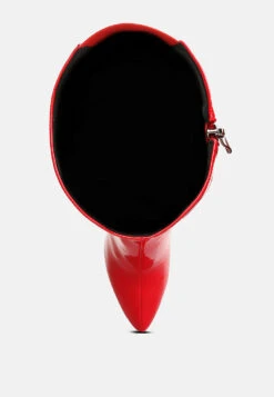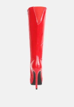 CHATTON Red Patent Stiletto High Heeled Calf Boots