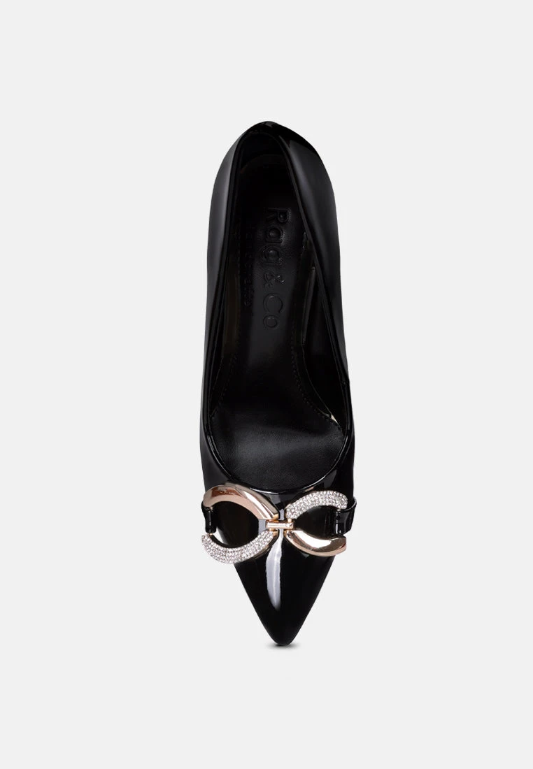 The shoes are sleek, slender, and chic with the touch of rhinestone and gold embellishment on the front which elevates the whole look of the sandals. The pump shoes have cushion padded innersole that offers comfort and cuts strain. The style is a classic and would look lovely as party heels for bachelorette and cocktail parties.