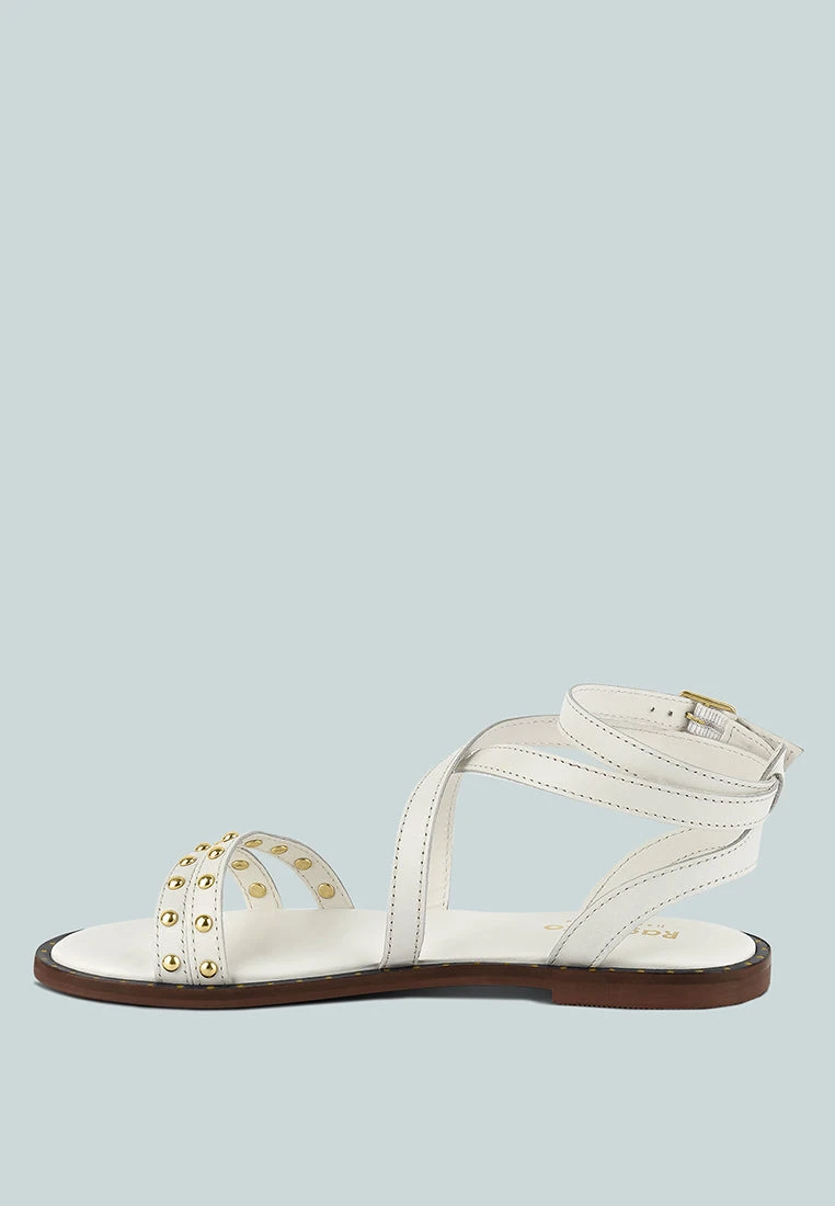 Elevate your everyday style with a classic flat sandal design that features metal studded straps on the front and tiny studs along the insole frame giving it a lovely finish. The Soft Padded insole will provide you with all-day comfort. The strappy ankle fastening with pin buckle secures feet well and is perfect for casual outings such as dates, brunch, etc.