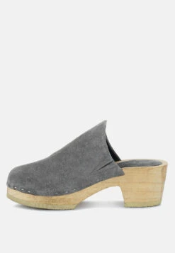 Made with Soft Genuine Suede and handcrafted wooden block heels, this clog fits the curve of feet well and is a comfortable day-long wear.