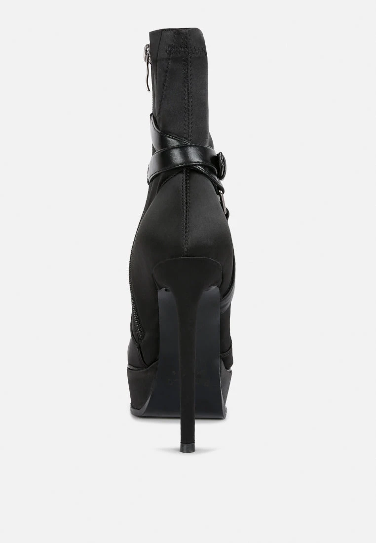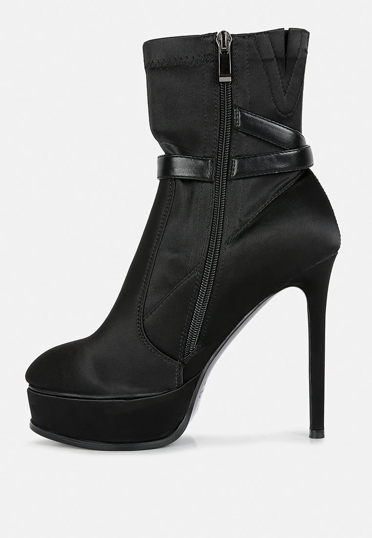 DOESBURG Black Satin Stiletto Ankle Boot