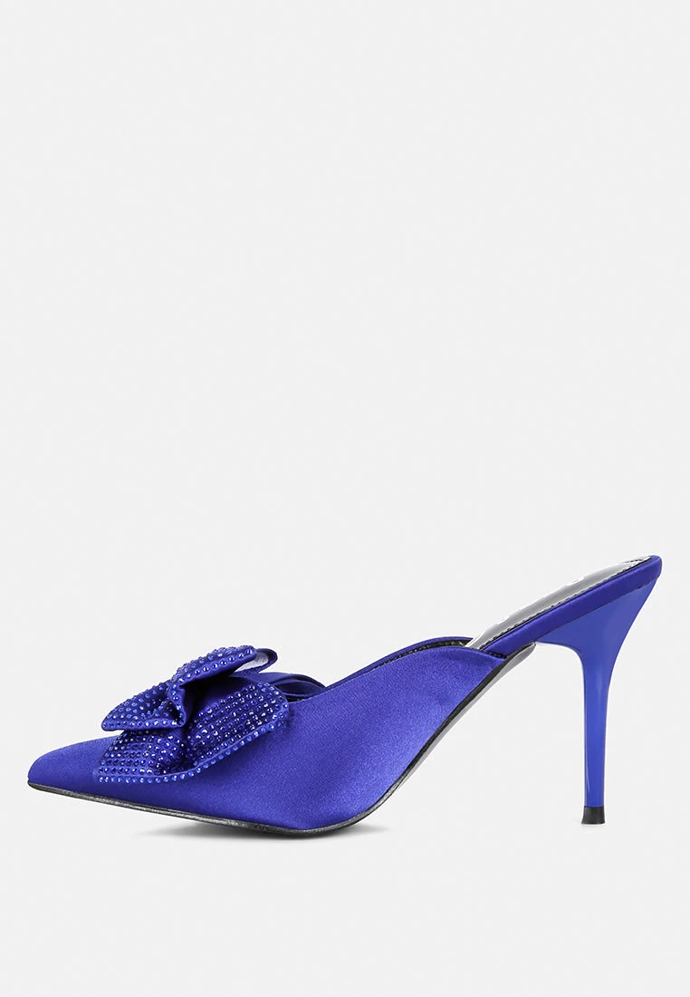 The high heel mules look romantic and alluring with the gorgeous rhinestones embellished bows that add a bit of bling to the monochromatic shoe. The soft innersole cuts strain and makes the sandals a rather comfortable fit. These are perfect to amplify a monochromatic or color block outfit for a cocktail party or even a wedding reception!