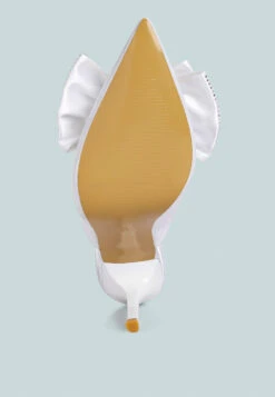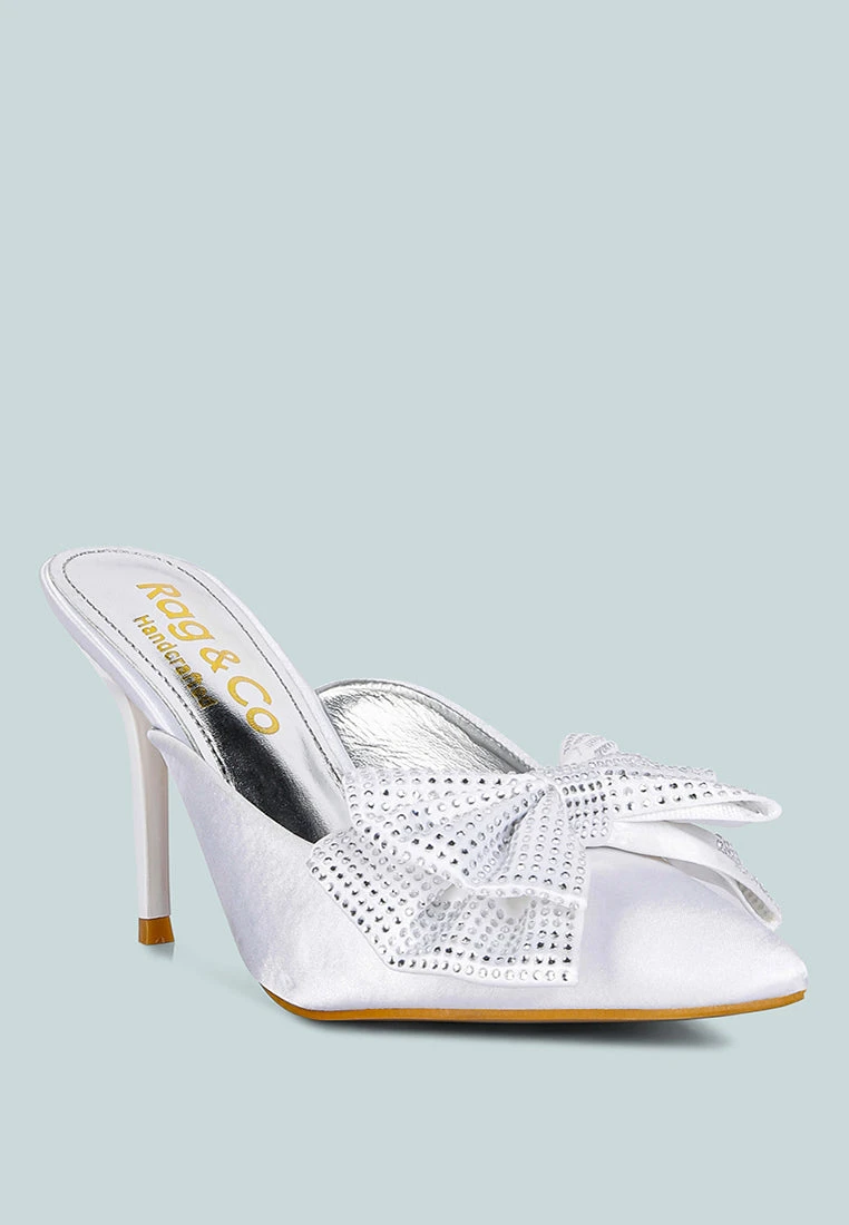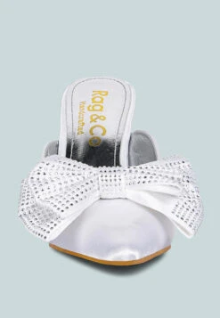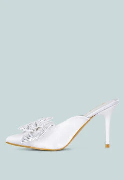 The high heel mules look romantic and alluring with the gorgeous rhinestones embellished bows that add a bit of bling to the monochromatic shoe. The soft innersole cuts strain and makes the sandals a rather comfortable fit. These fancy heels would look lovely as white wedding shoes!