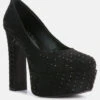 This pair of fancy heels with very stylish stilettos is worth every penny spent. Built on a raised platform – the shoe sets to foot curve perfectly for maximum wearability. Their versatility elaborates their usage for varied occasions such as weddings, parties, etc.