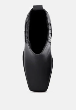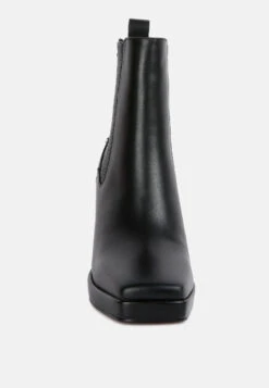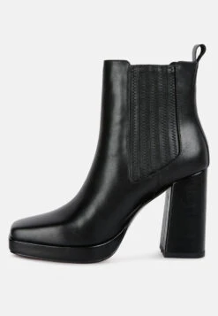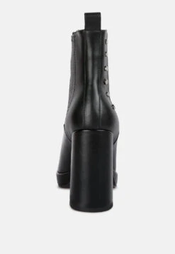 Made from soft tanned luxurious leather – this boot is for keeps. Stylish Chelsea is structured on the beautiful square cut toe on a high block heel and the one-inch platform looks stylish and elan. The elasticated gussets fit well, making them easy to wear. The lining of monotone studs adds to the detail.