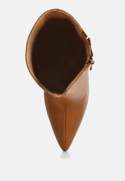 Goes above the ankle – this sharp pointed toe leather boot keeps warm, keeps stylish and is for keeps this winter.