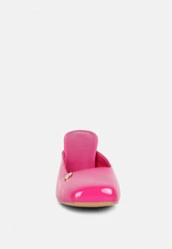 NEOPLAST Pink Patent PU Block Heeled Mules