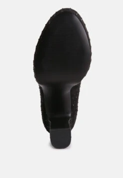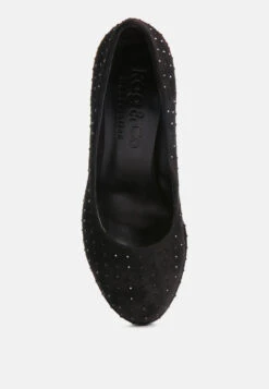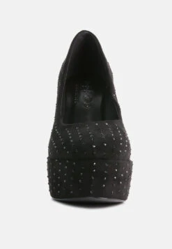 The rhinestone set pump shoes are elegant yet bold with the intricate rhinestone embellished details and platform block high heels. The pumps are perfect to wear for a special occasion such as weddings, cocktail parties, etc paired with a beautiful long dress.