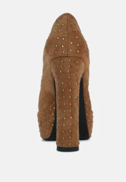 The rhinestone set pump shoes are elegant yet bold with the intricate rhinestone set details and platform block high heels. The pumps are perfect to wear for a special occasion such as weddings, cocktail parties, etc paired with a beautiful long dress.