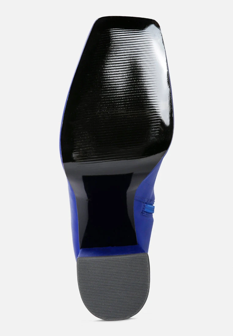 Strectchable Satin Knee High boot is a gorgeous winter style boot. It has side zipper detail which makes it easy to wear. The high block heeled square cut long boot is made in great craftsmanship and finish.