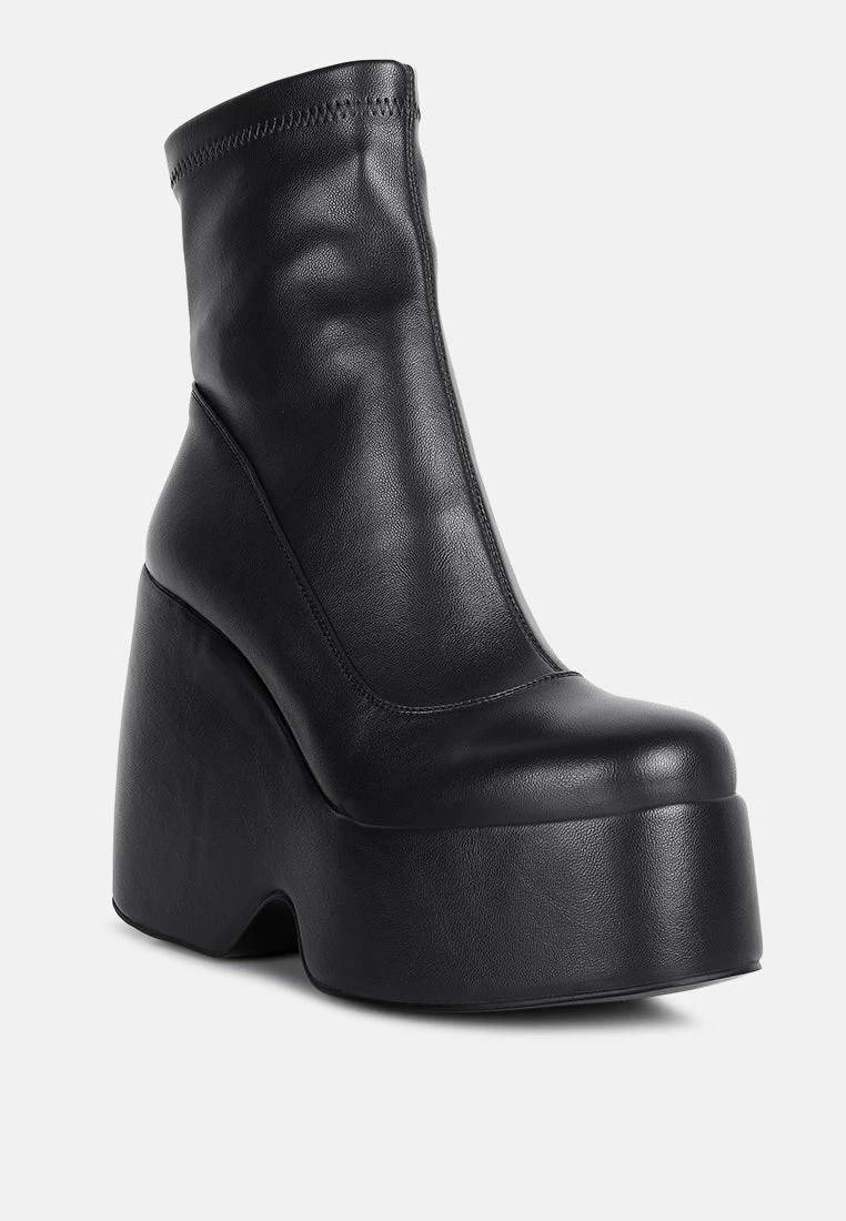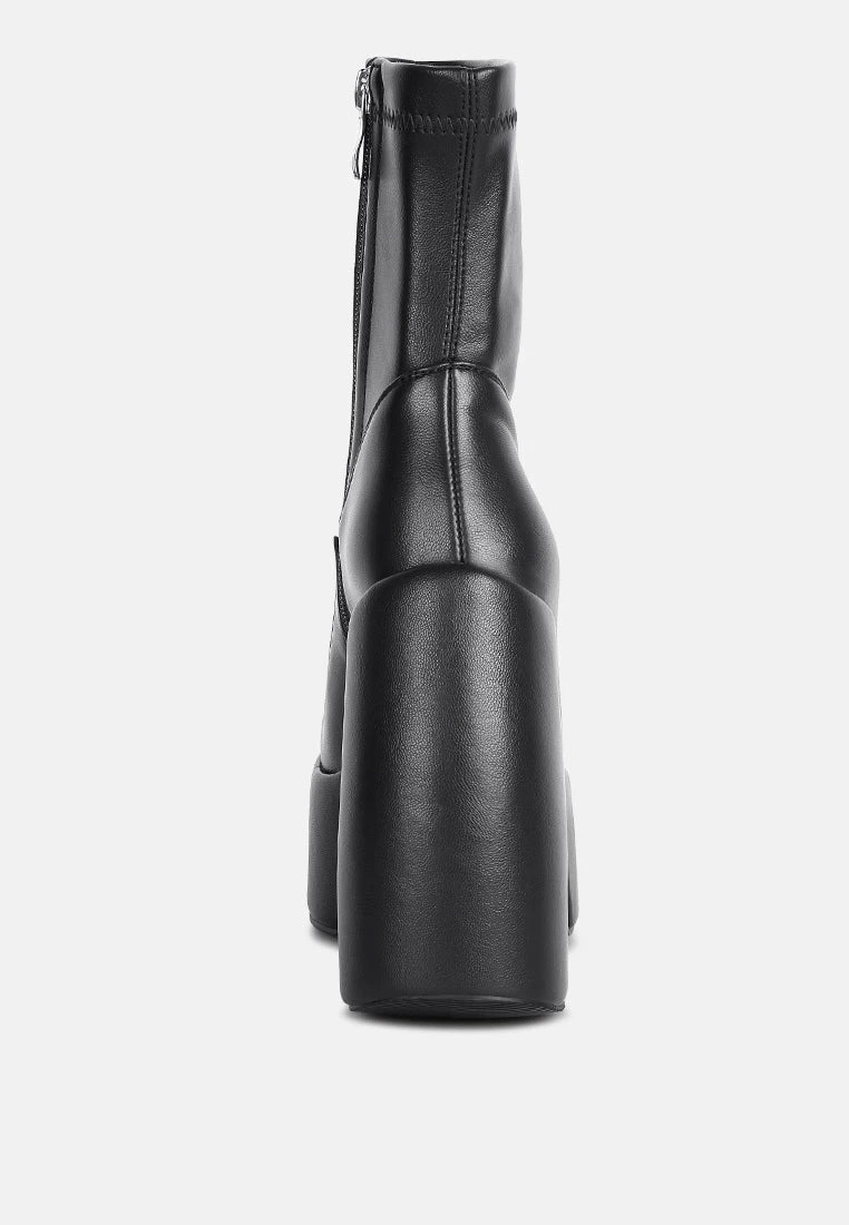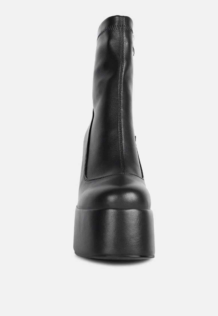 Lightweight statement high platform boot from Rag & Co. these ankle boots have side zipper detail which makes it easy to wear. It has comfortable round toe. The stretch leatherette is ultra comfy, flexible and molds as per your feet.