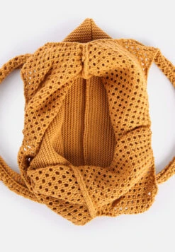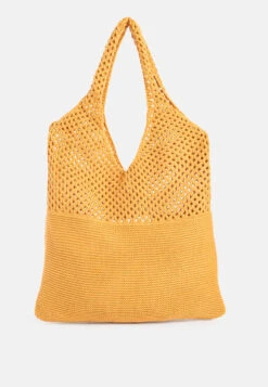 Knitted from wool, this knitted bag has enough room for your supplies as you stroll around. It is available in three earthy colors to choose from.