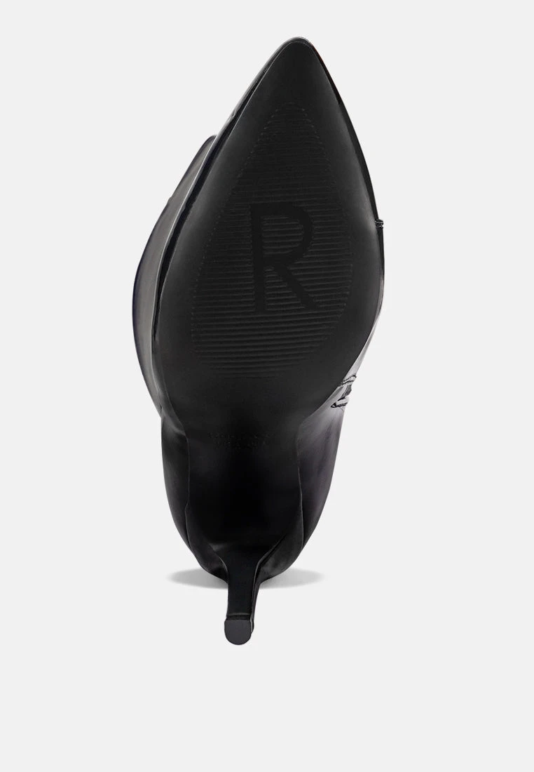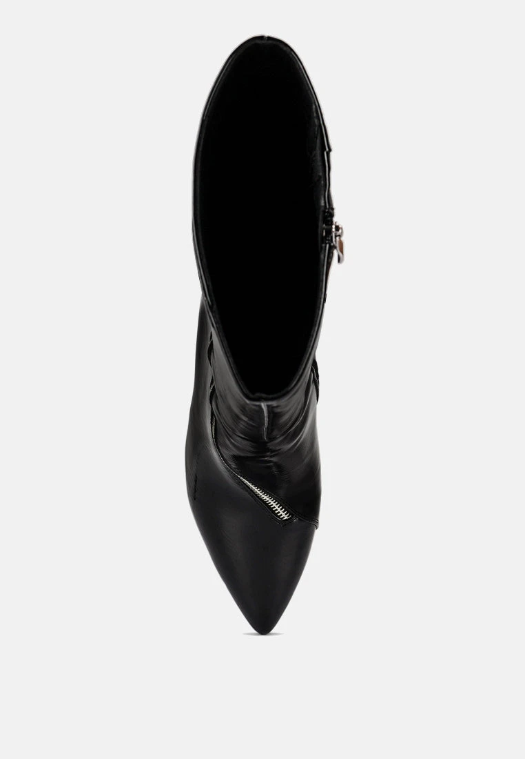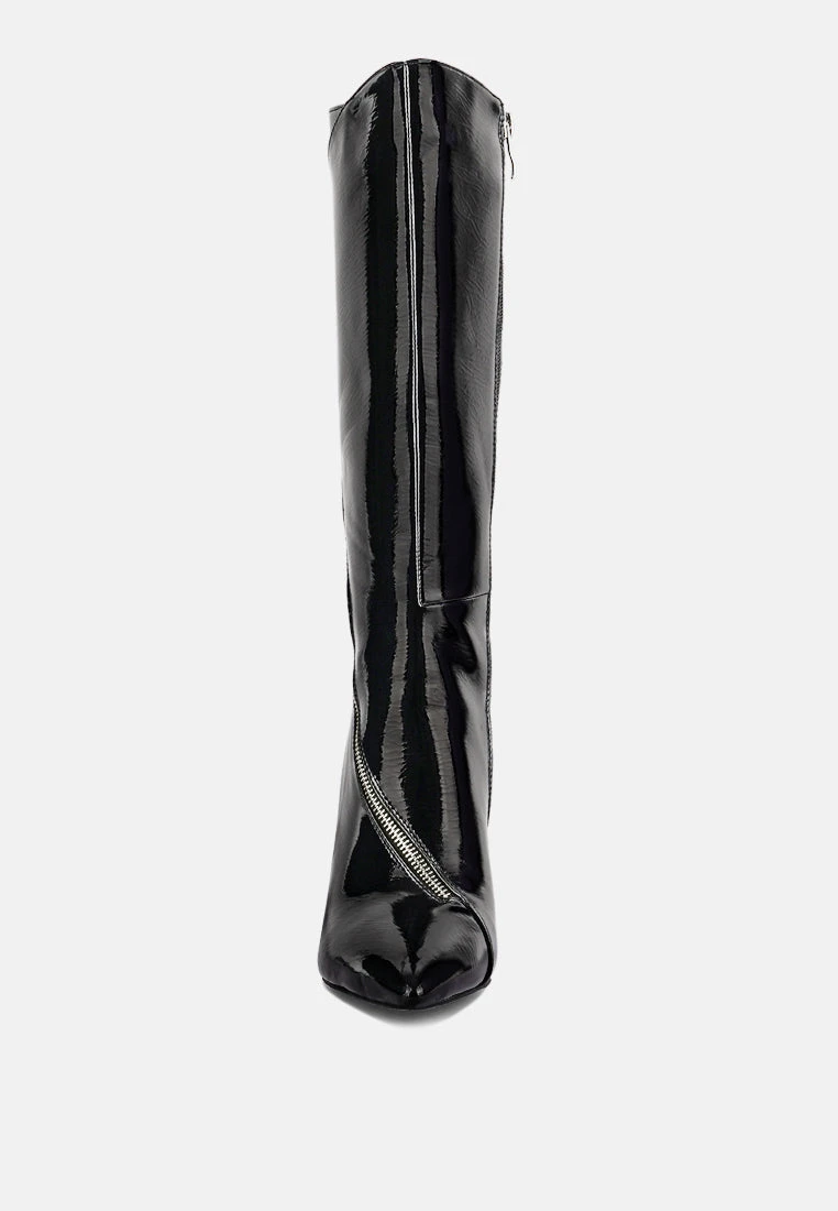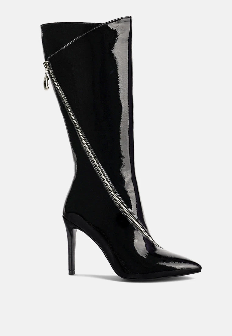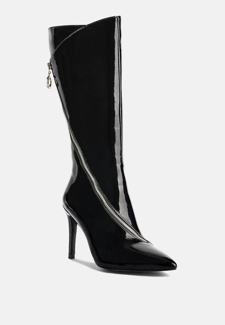 The eccentric zip detail makes a distinctive impression and elevates the visual aesthetic of the boots. The stiletto heels and pointed toe look sharp and bold. These are great for fall and winter parties such as after party shoes and bachelorette party wear!