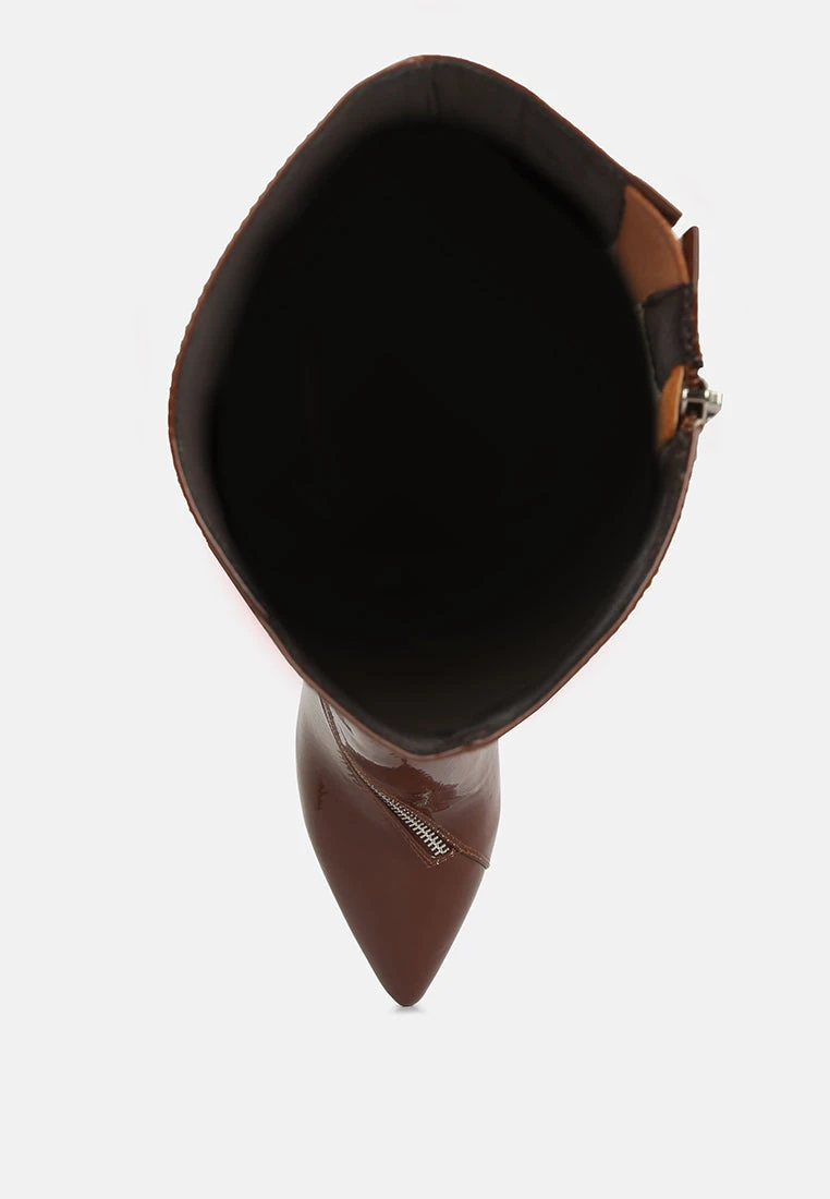 The eccentric zip detail makes a distinctive impression and elevates the visual aesthetic of the boots. The stiletto heels and pointed toe look sharp and bold. These are great for fall and winter parties such as after party shoes and bachelorette party wear!