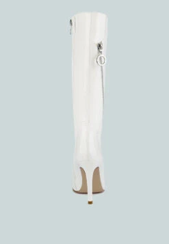 The eccentric zip detail makes a distinctive impression and elevates the visual aesthetic of the boots. The stiletto heels and pointed toe look sharp and bold. These are great for fall and winter parties such as after party shoes and bachelorette party wear!