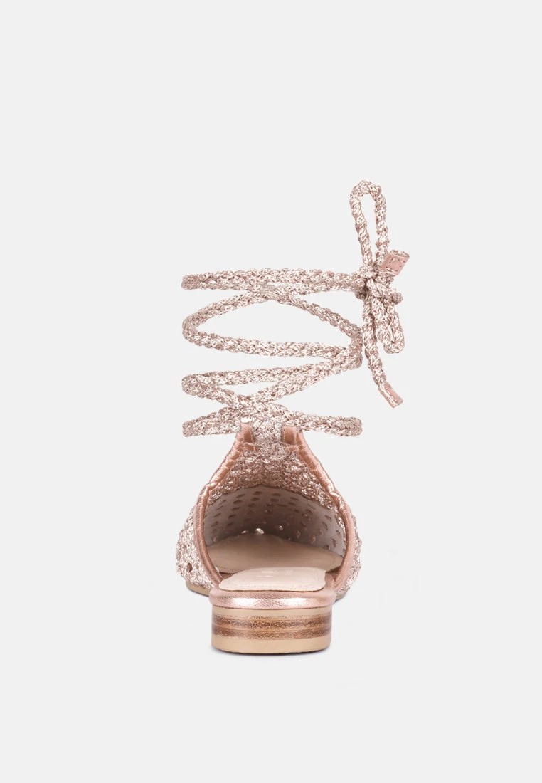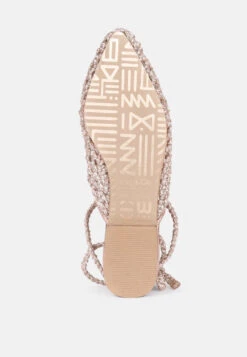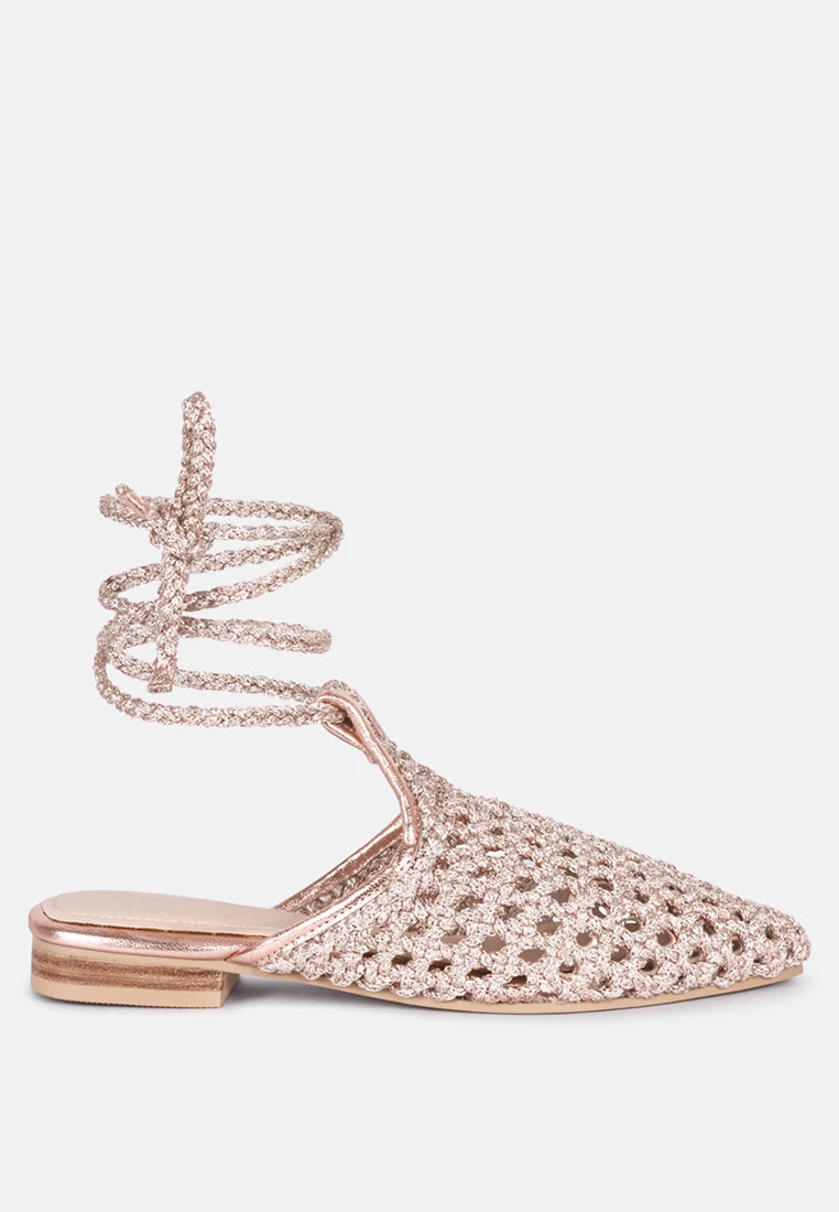 Handwoven and knitted cotton mules with foam cushioned insole is all natural, comfortable and treasured handcrafted piece. The tie up flat mule cum sandals are simply chic and would make the perfect pair as beach wedding shoes for bridesmaids and even as mother of the bride shoes.