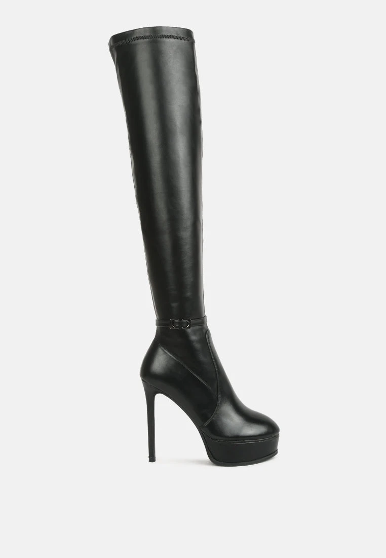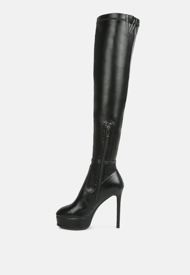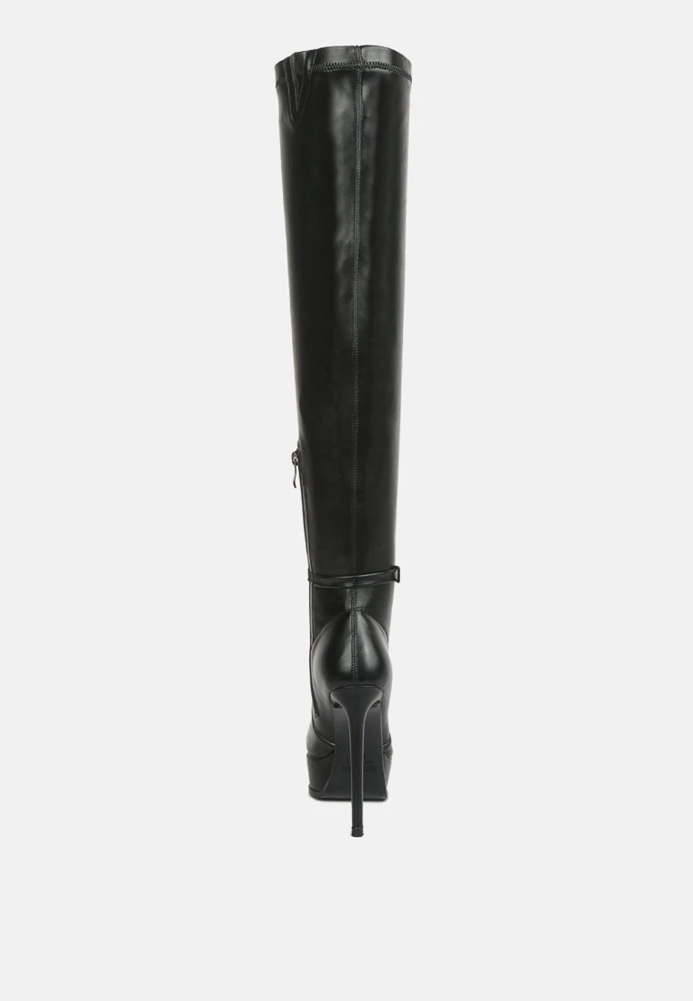 TWINKLES Patent Stiletto Heeled Long Boots In Black