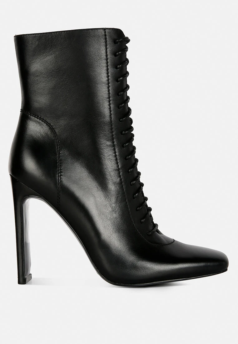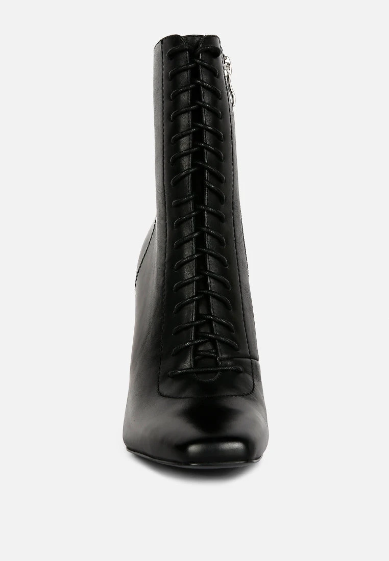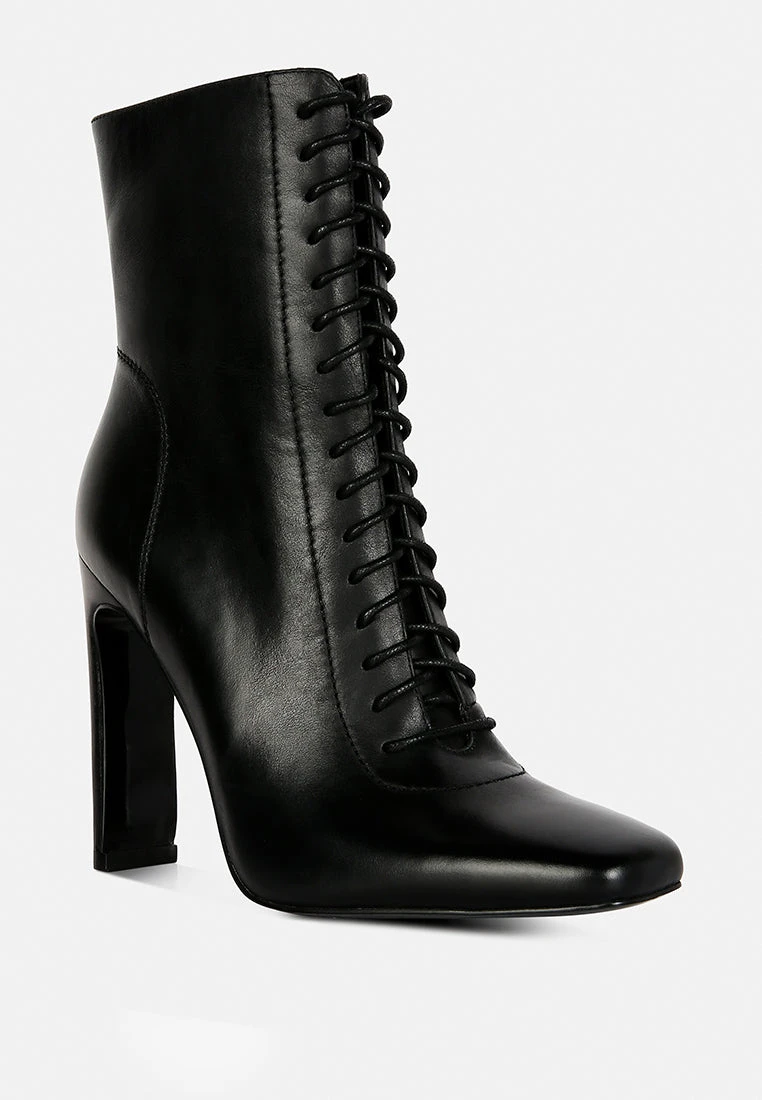 WYNDHAM Black Lace Up Leather Ankle Boots